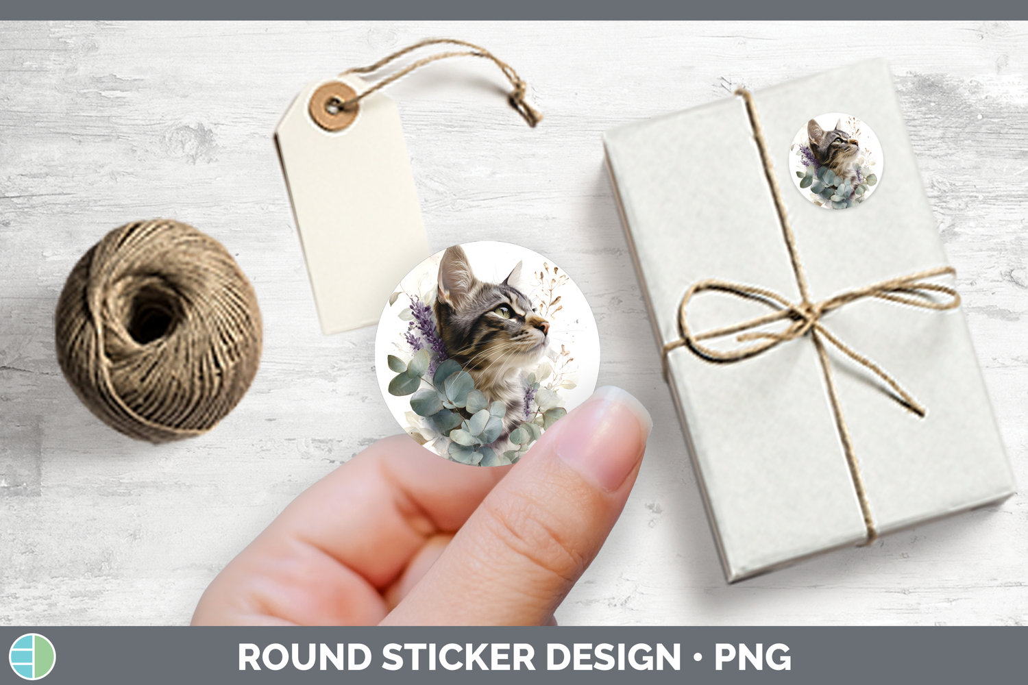 Cats Lavender and Eucalyptus Tabby Stickers | Round Labels D