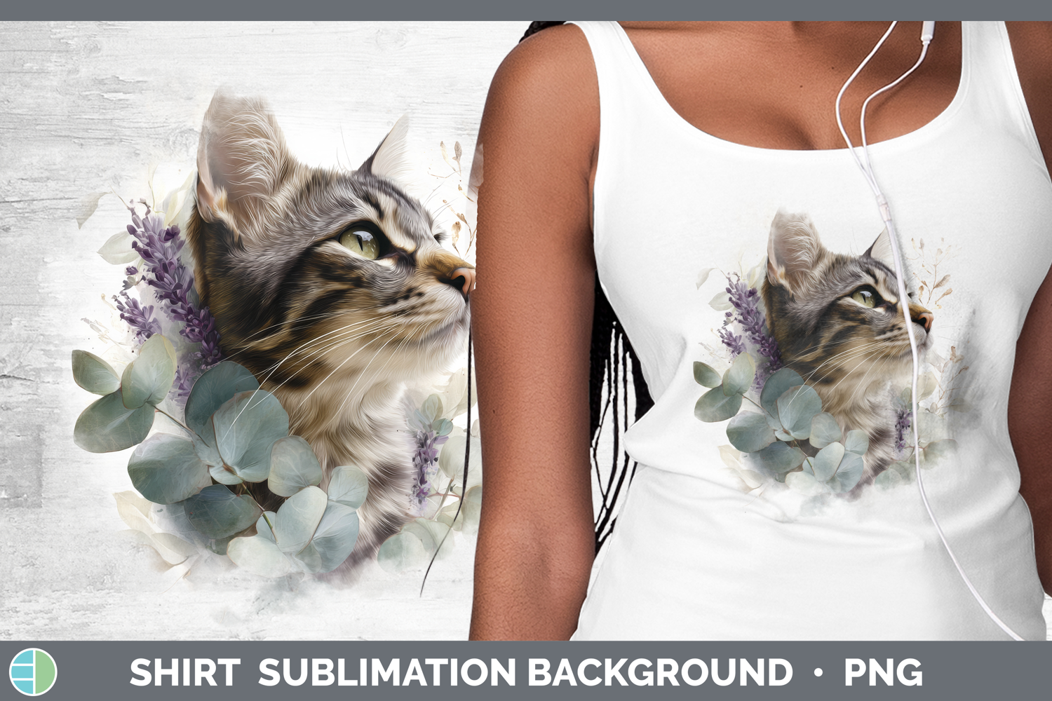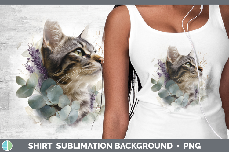 Tabby Shirt Cats Lavender and Eucalyptus Sublimation Backgro