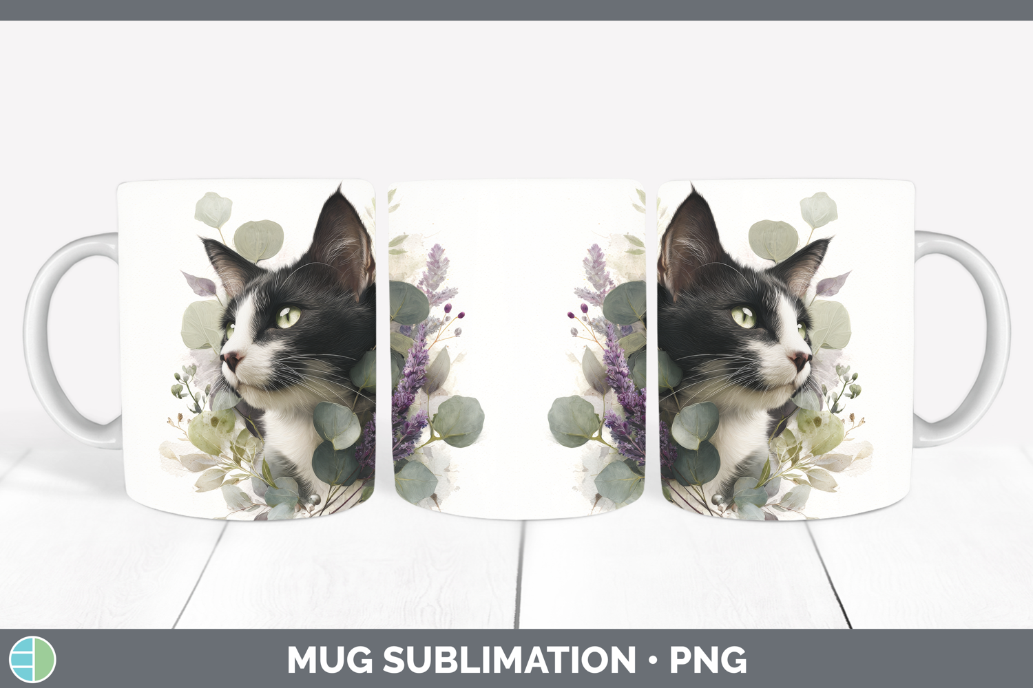 Tuxedo Mug Wrap Cats Lavender and Eucalyptus Sublimation Cof