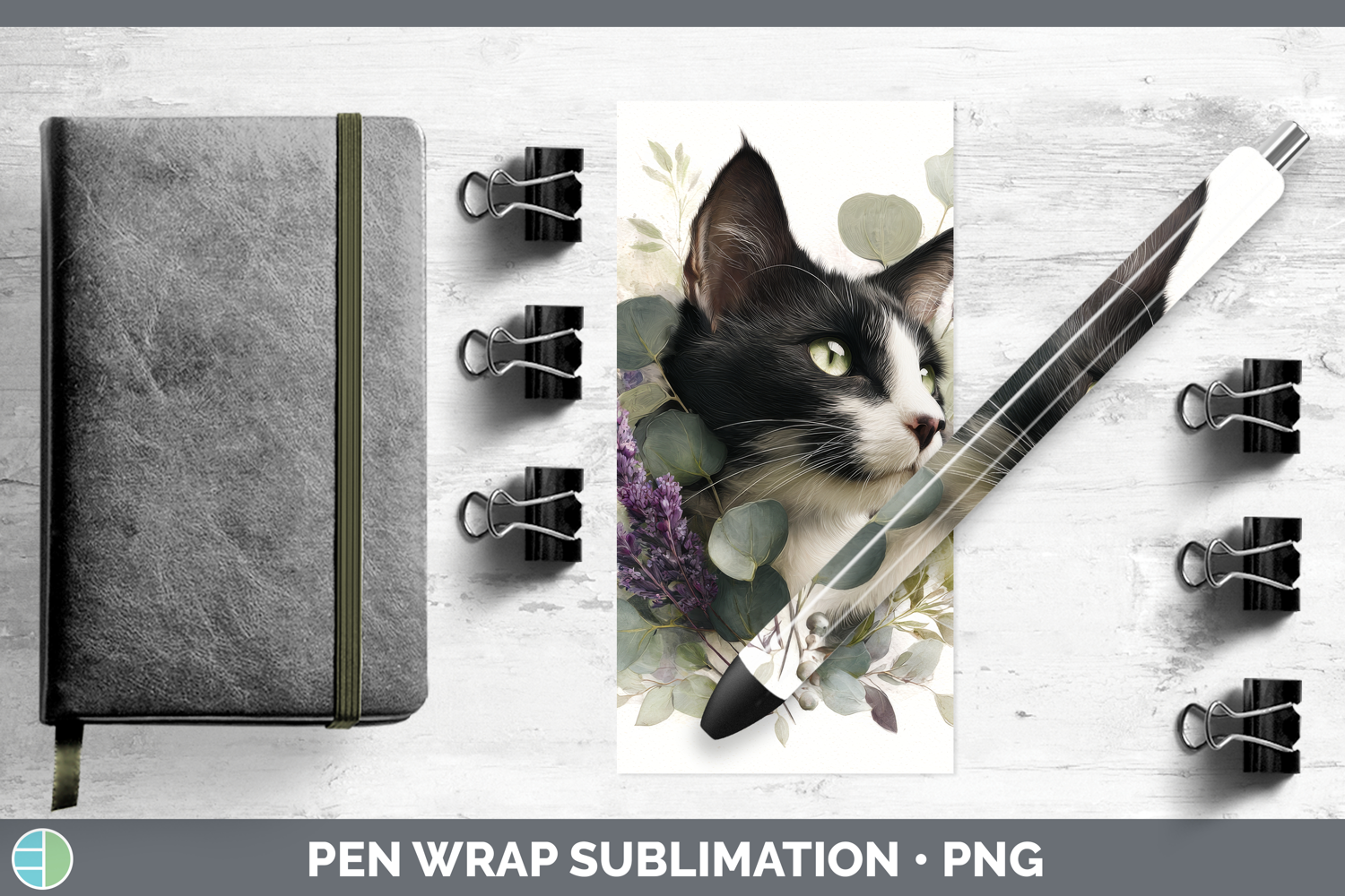 Tuxedo Pen Wrap Cats Lavender and Eucalyptus Sublimation Pen