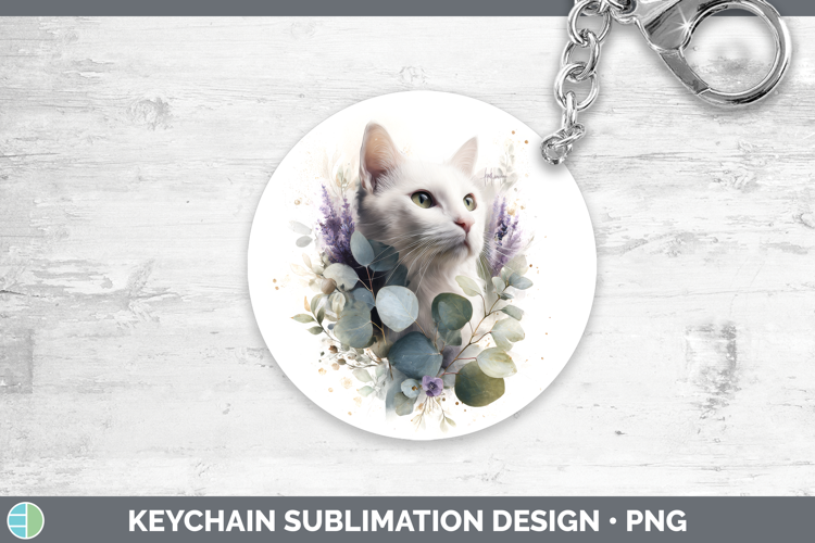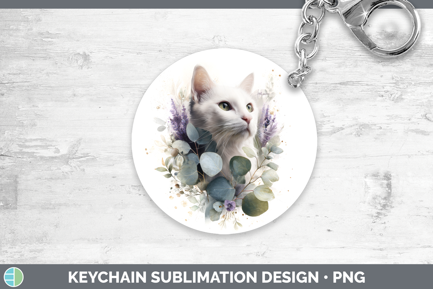 White Keychain Cats Lavender and Eucalyptus Sublimation Keyr