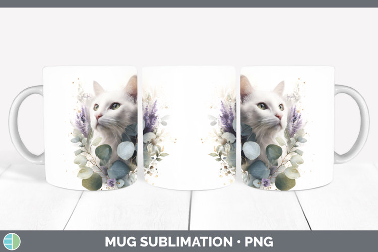 White Mug Wrap Cats Lavender and Eucalyptus Sublimation Coff