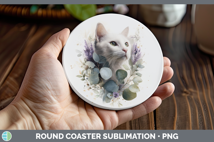 White Round Coaster Cats Lavender and Eucalyptus Sublimation