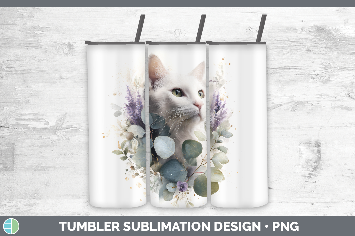 White Tumbler Cats Lavender and Eucalyptus Sublimation 20 oz