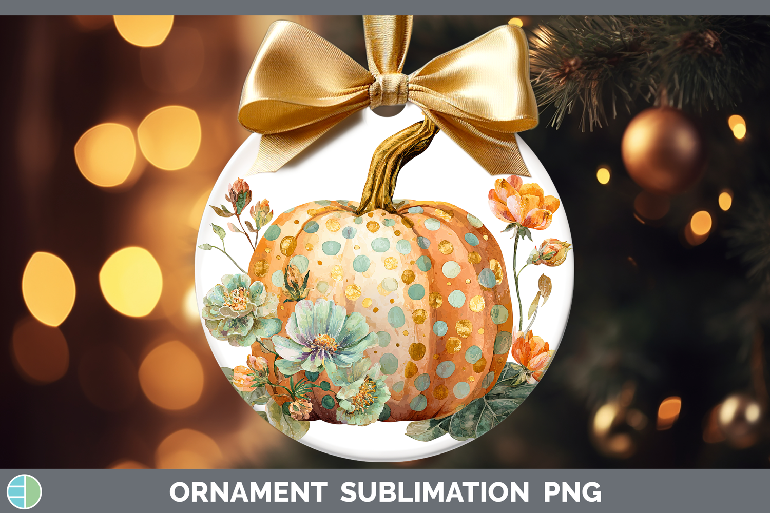 Polka Dot Pumpkin Ornament Autumn Pastel Brush Strokes Subli