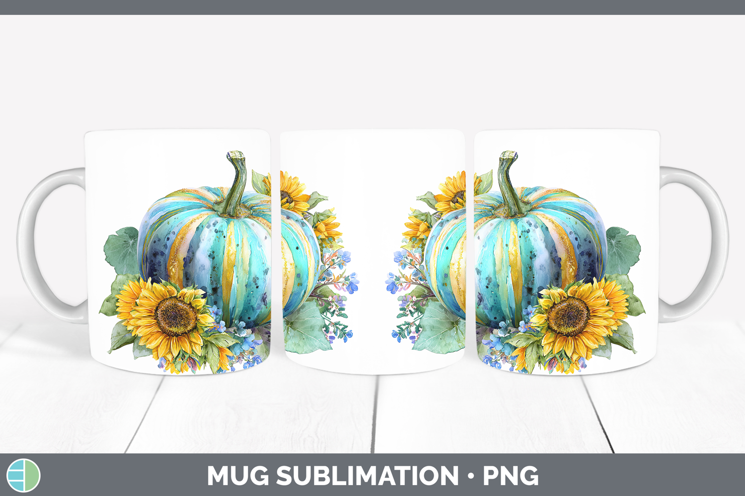 Sunflower Pumpkin Mug Wrap Autumn Pastel Brush Strokes Subli