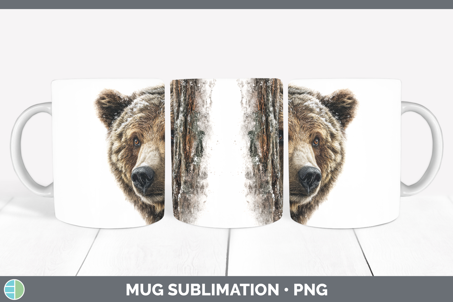 Grizzly Bear Woodland Tree Peek Mug Wrap Sublimation Design