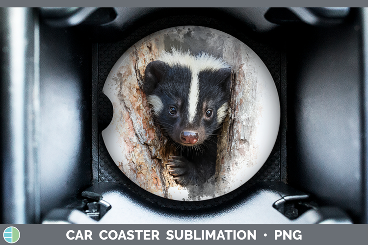 Skunk Woodland Tree Peek Car Coaster Sublimation Design