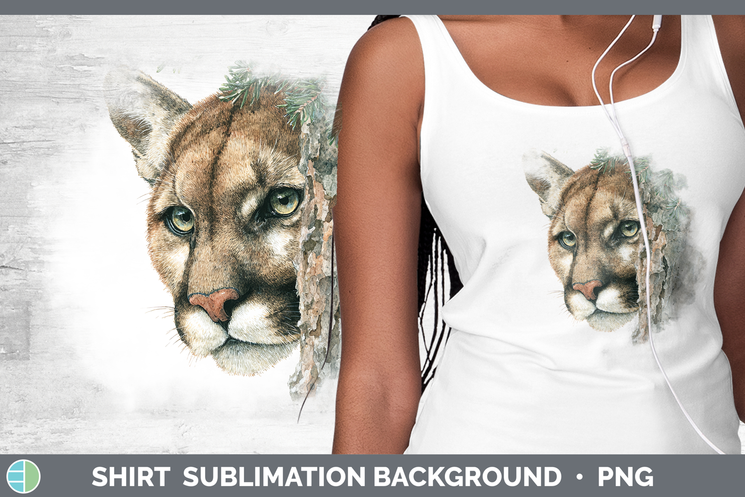 Cougar Woodland Tree Peek Shirt Sublimation Design