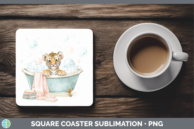 Tiger Animals Bathtub Square Coaster Sublimation Design