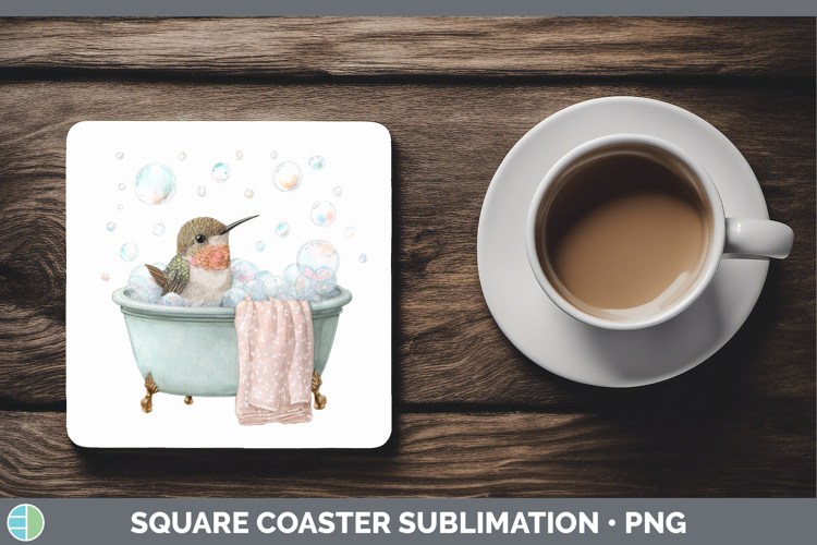 Hummingbird Bathtub Square Coaster Sublimation Design