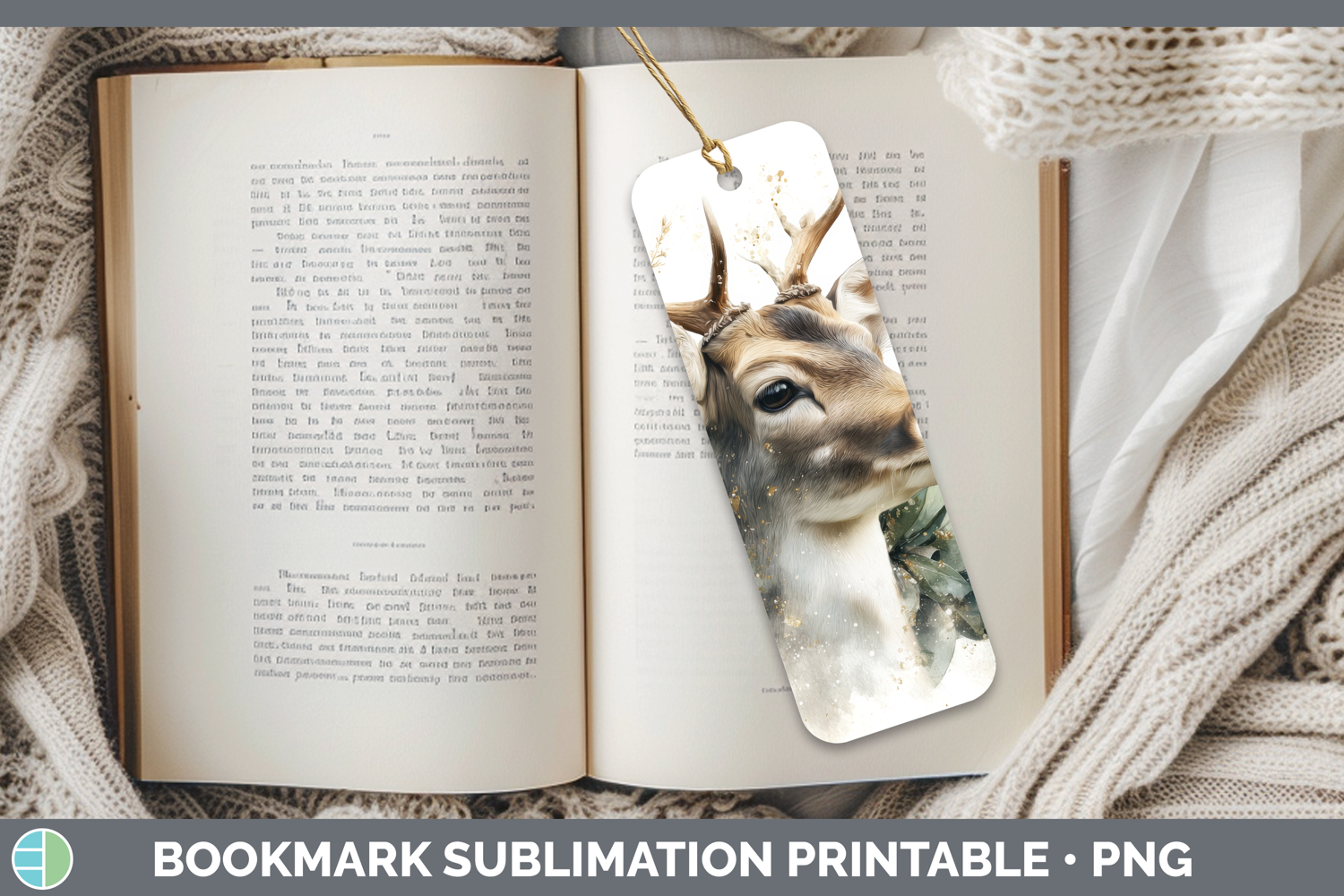 Reindeer Christmas Botanicals Bookmark Sublimation Design