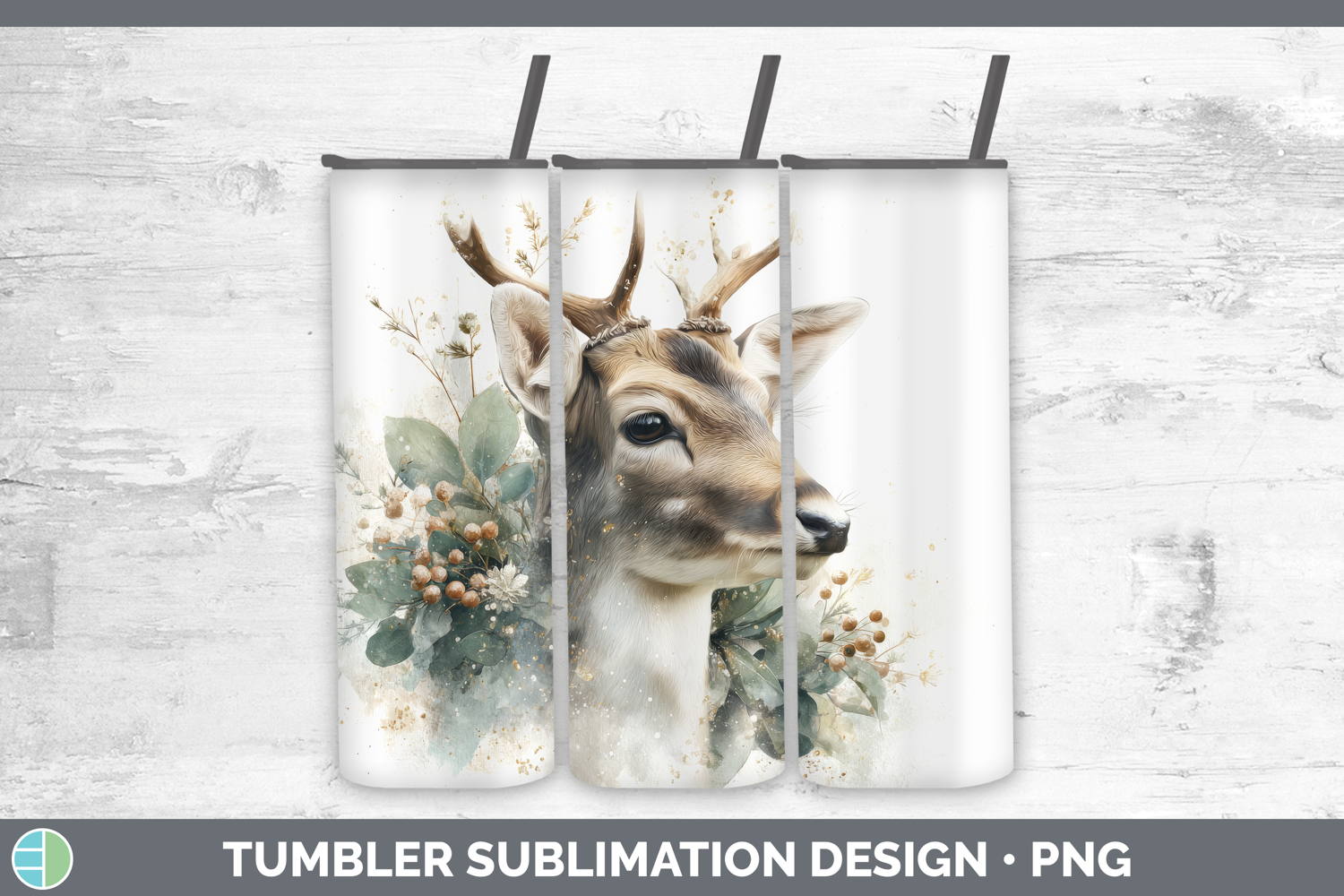Reindeer Christmas Botanicals Tumbler Sublimation Design