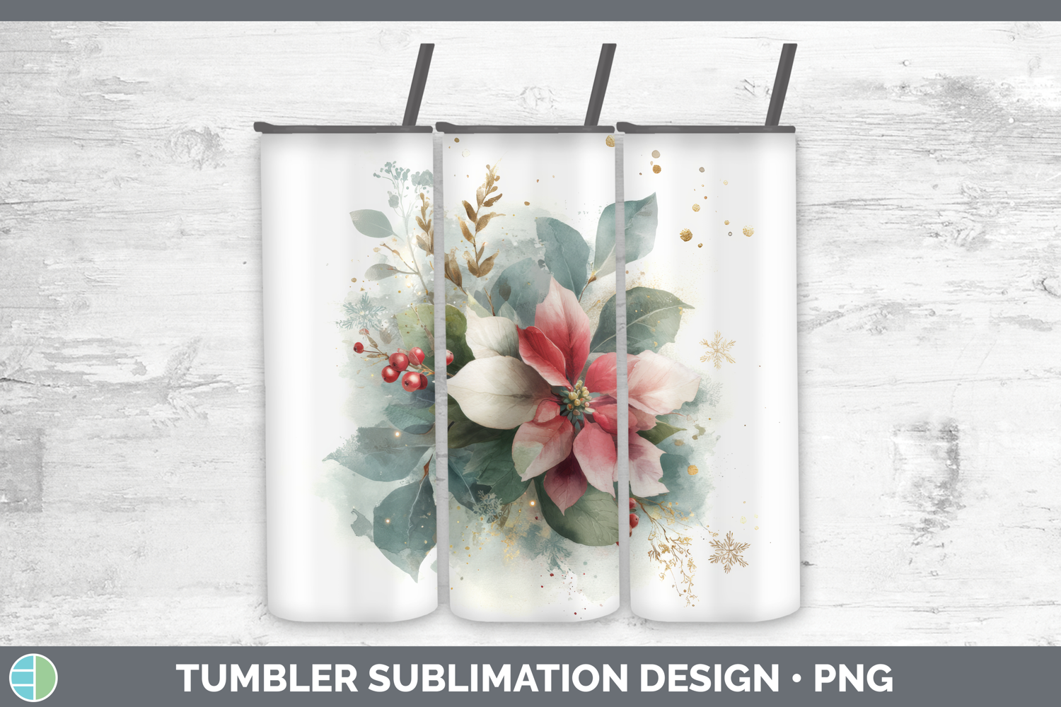 Similar Design Products to Poinsettia Christmas Botanicals Tumbler Sublimation Design