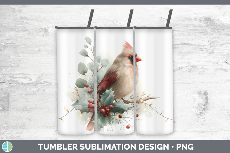 Cardinal Christmas Botanicals Tumbler Sublimation Design