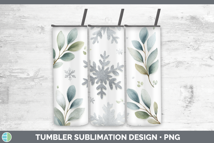 Snowflakes Christmas Botanicals Tumbler Sublimation Design