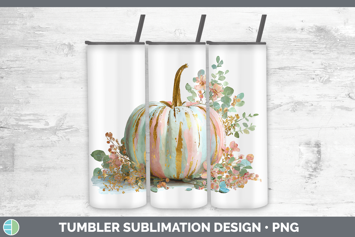 Botanical Pumpkin Autumn Pastel Brush Strokes Tumbler Sublim