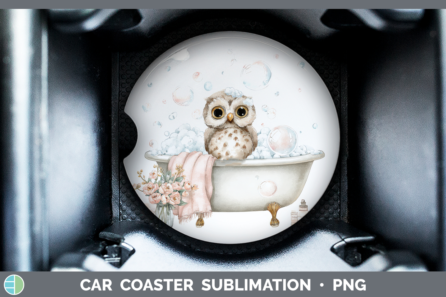 Owl Bathtub Car Coaster Sublimation Design