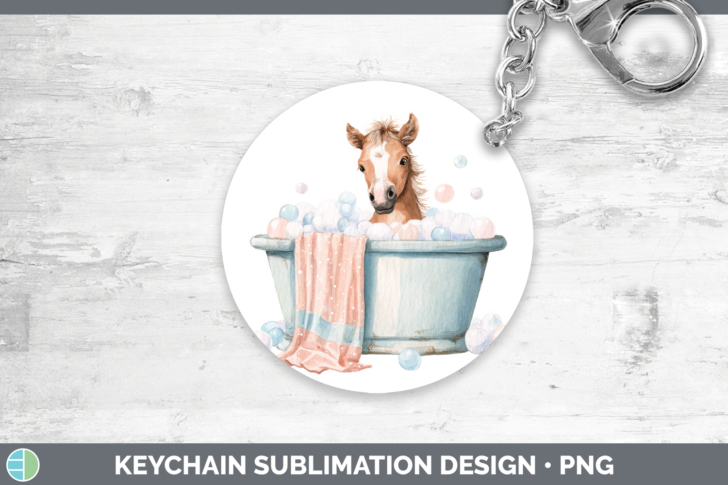 Horse Bathtub Keychain Sublimation Design