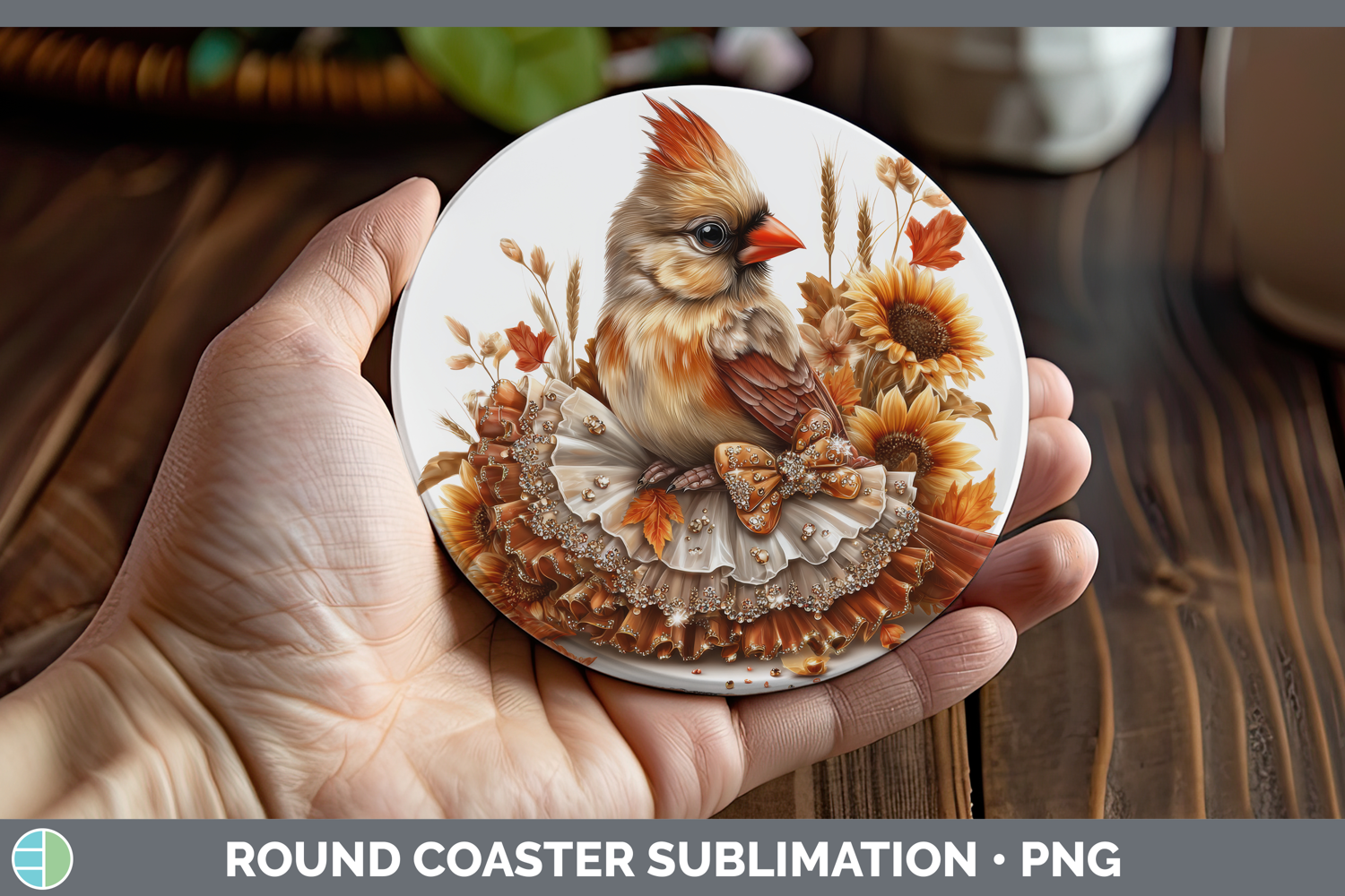 Cardinal Animals Cute Thanksgiving Round Coaster Sublimation
