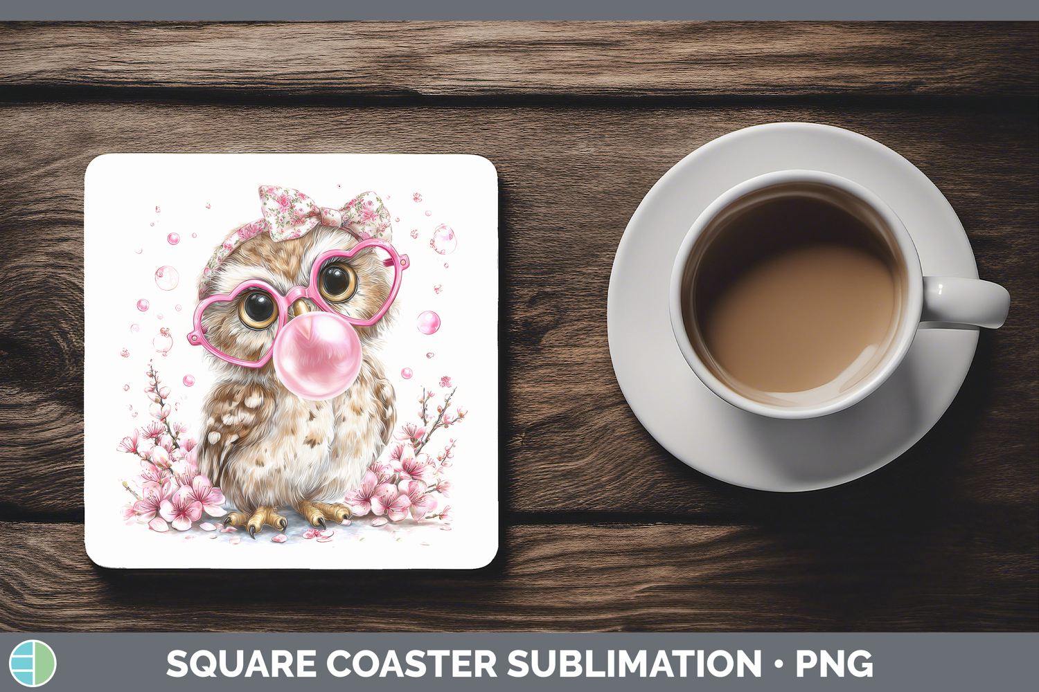 Owl Animals Pink Bubble Gum Square Coaster Sublimation Desig