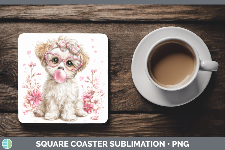 Puppy Animals Pink Bubble Gum Square Coaster Sublimation Des