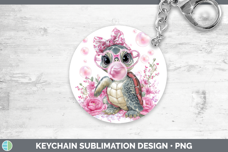Sea Turtle Animals Pink Bubble Gum Keychain Sublimation Desi