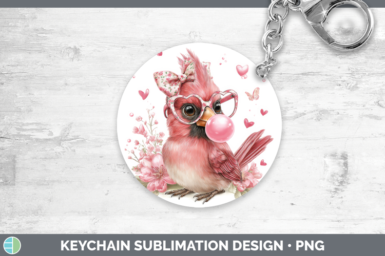 Cardinal Animals Pink Bubble Gum Keychain Sublimation Design