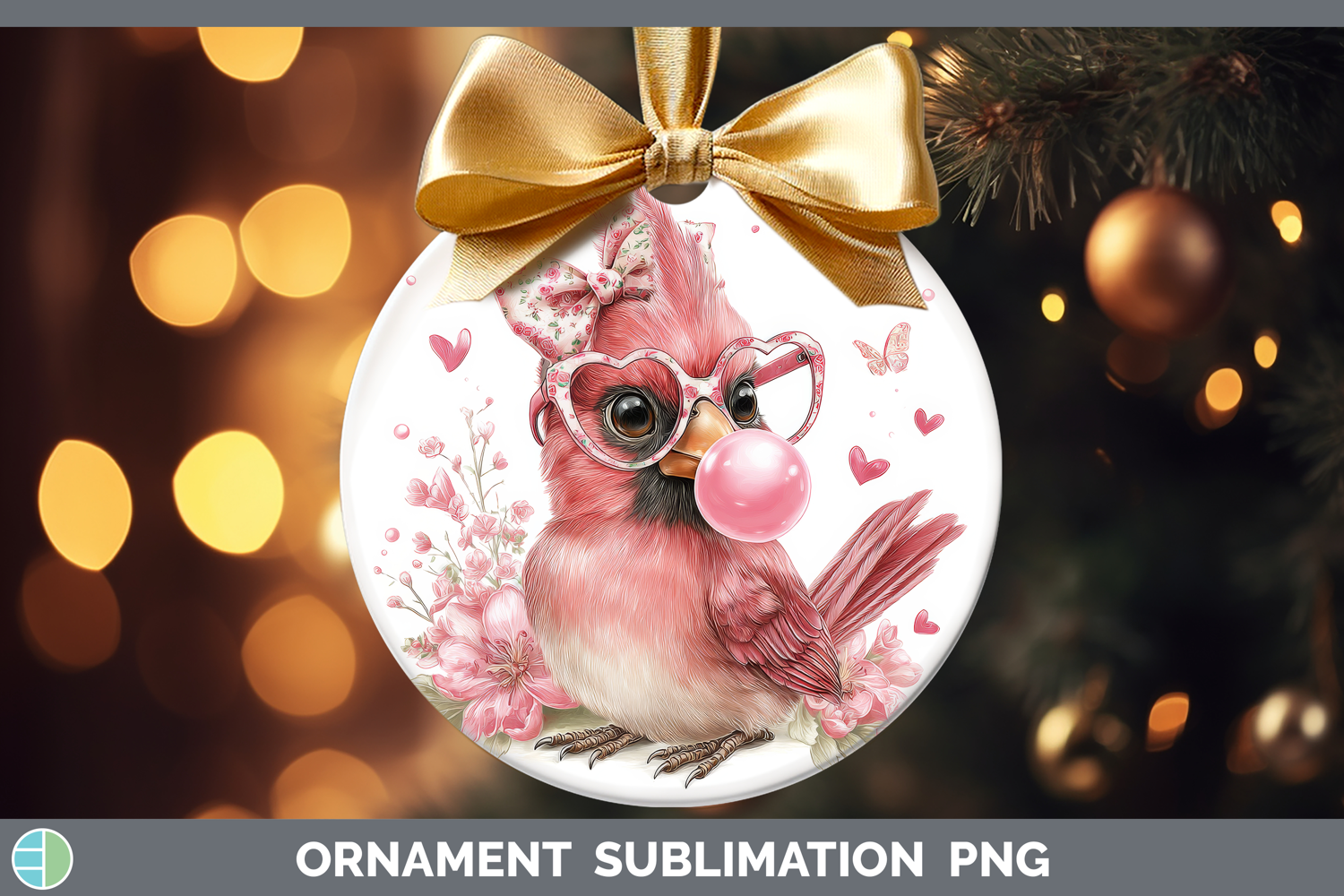 Cardinal Animals Pink Bubble Gum Ornament Sublimation Design