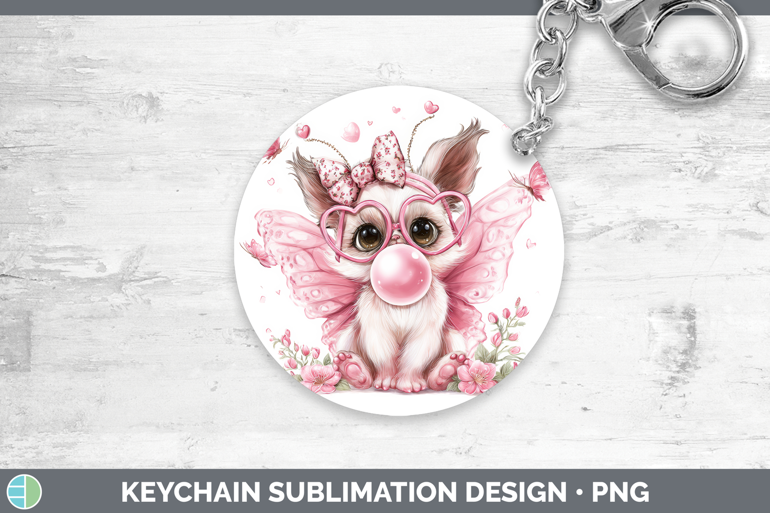 Butterfly Animals Pink Bubble Gum Keychain Sublimation Desig