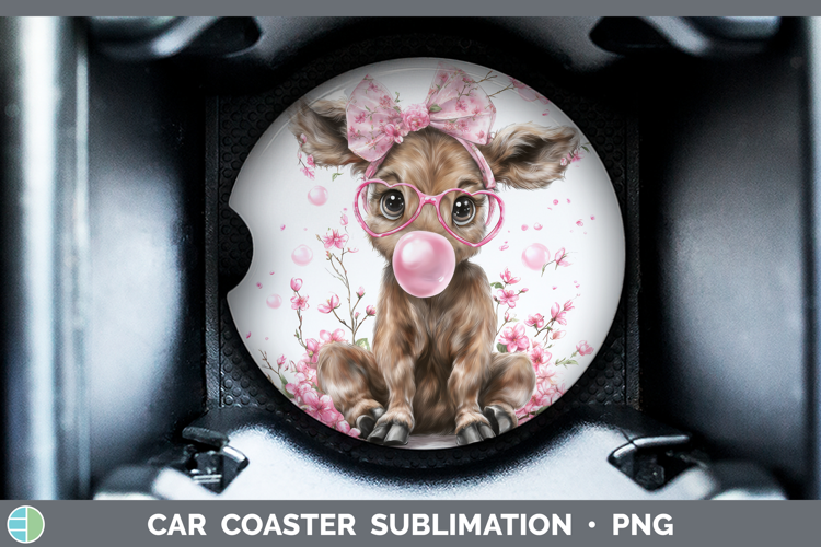 Moose Animals Pink Bubble Gum Car Coaster Sublimation Design