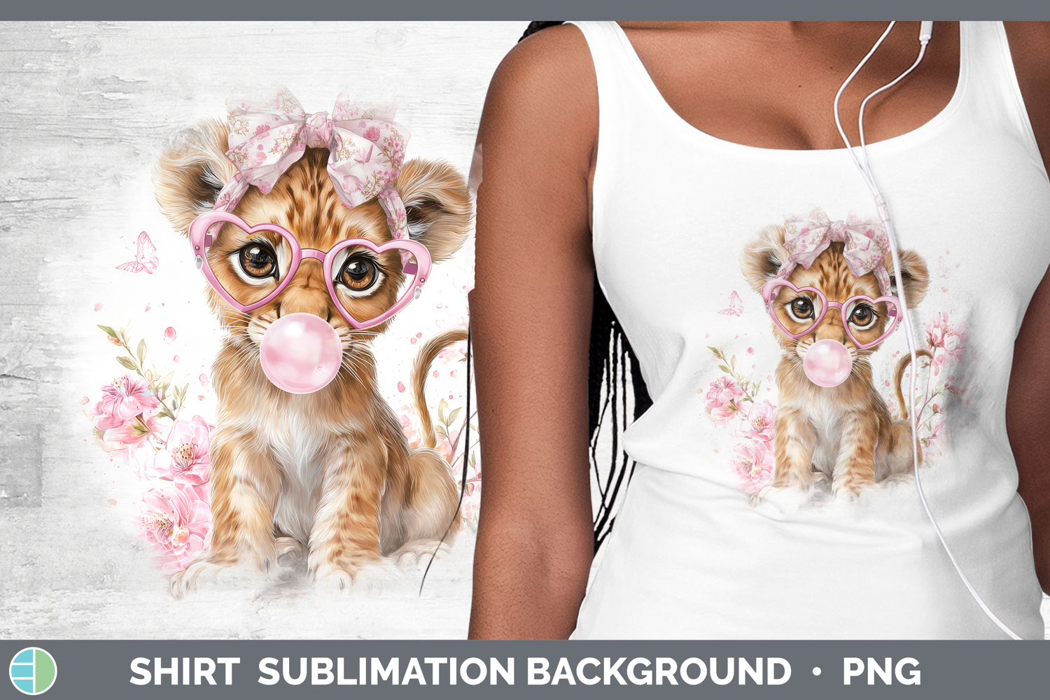 Lion Animals Pink Bubble Gum Shirt Sublimation Design
