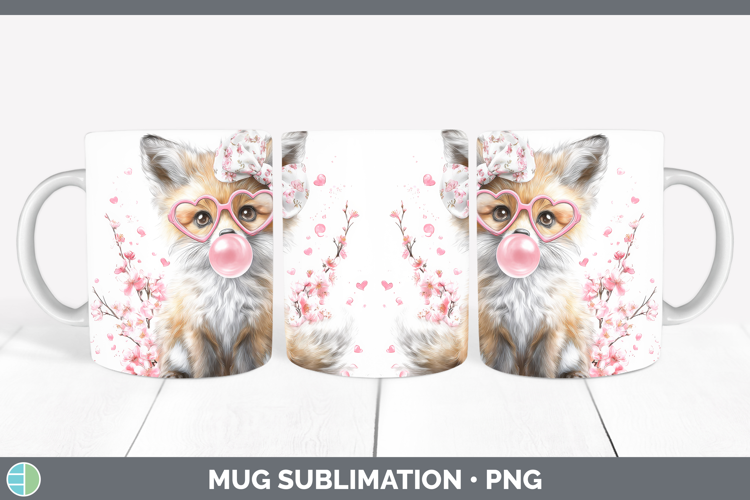 Fox Animals Pink Bubble Gum Mug Wrap Sublimation Design