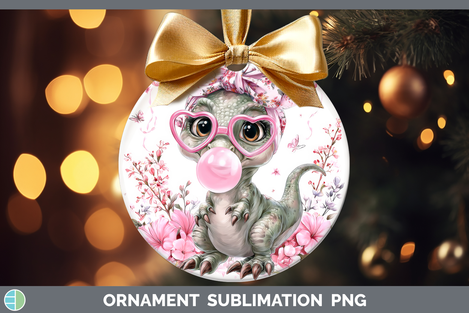 Dinosaur Animals Pink Bubble Gum Ornament Sublimation Design