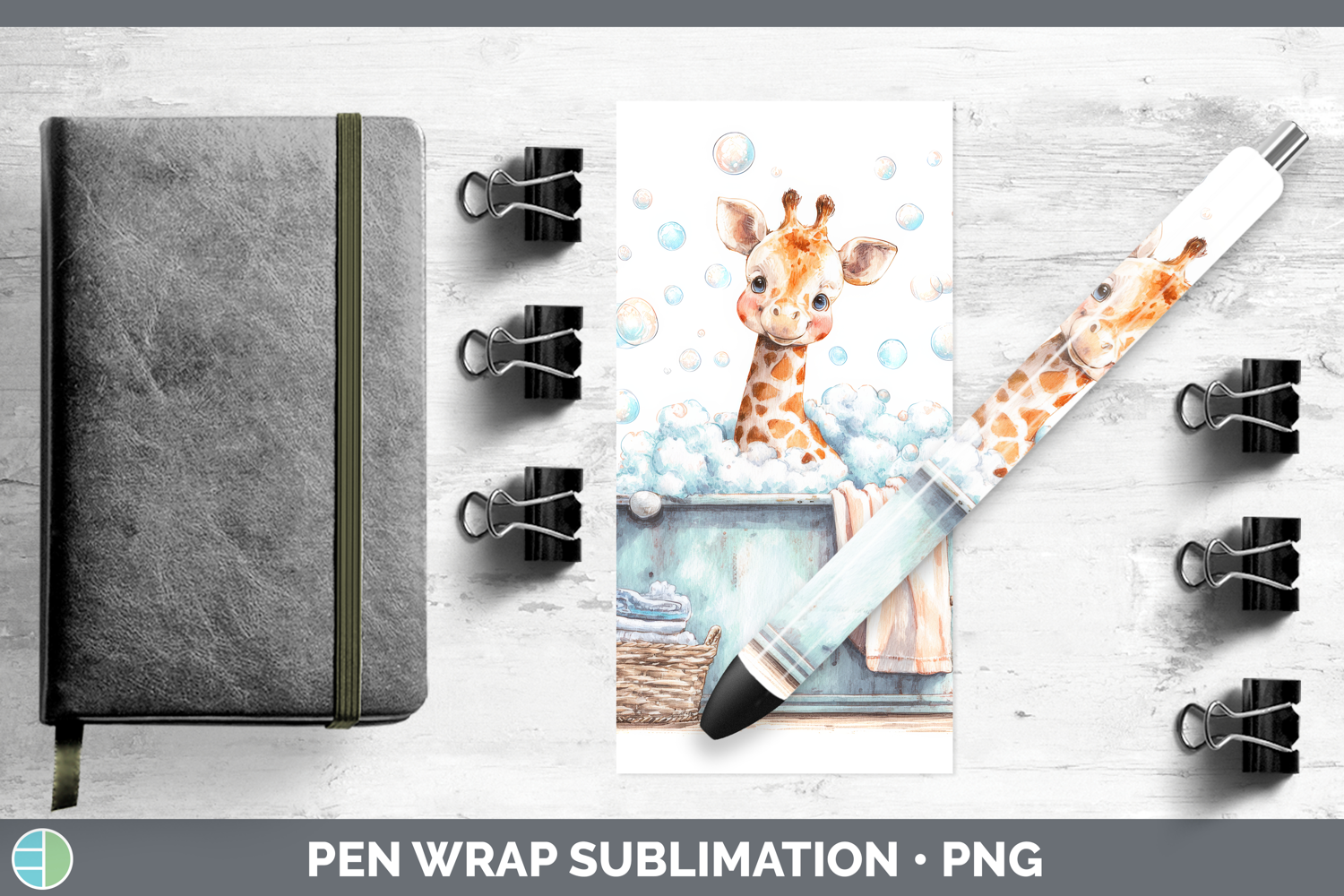 Giraffe Bathtub Pen Wrap Sublimation Design