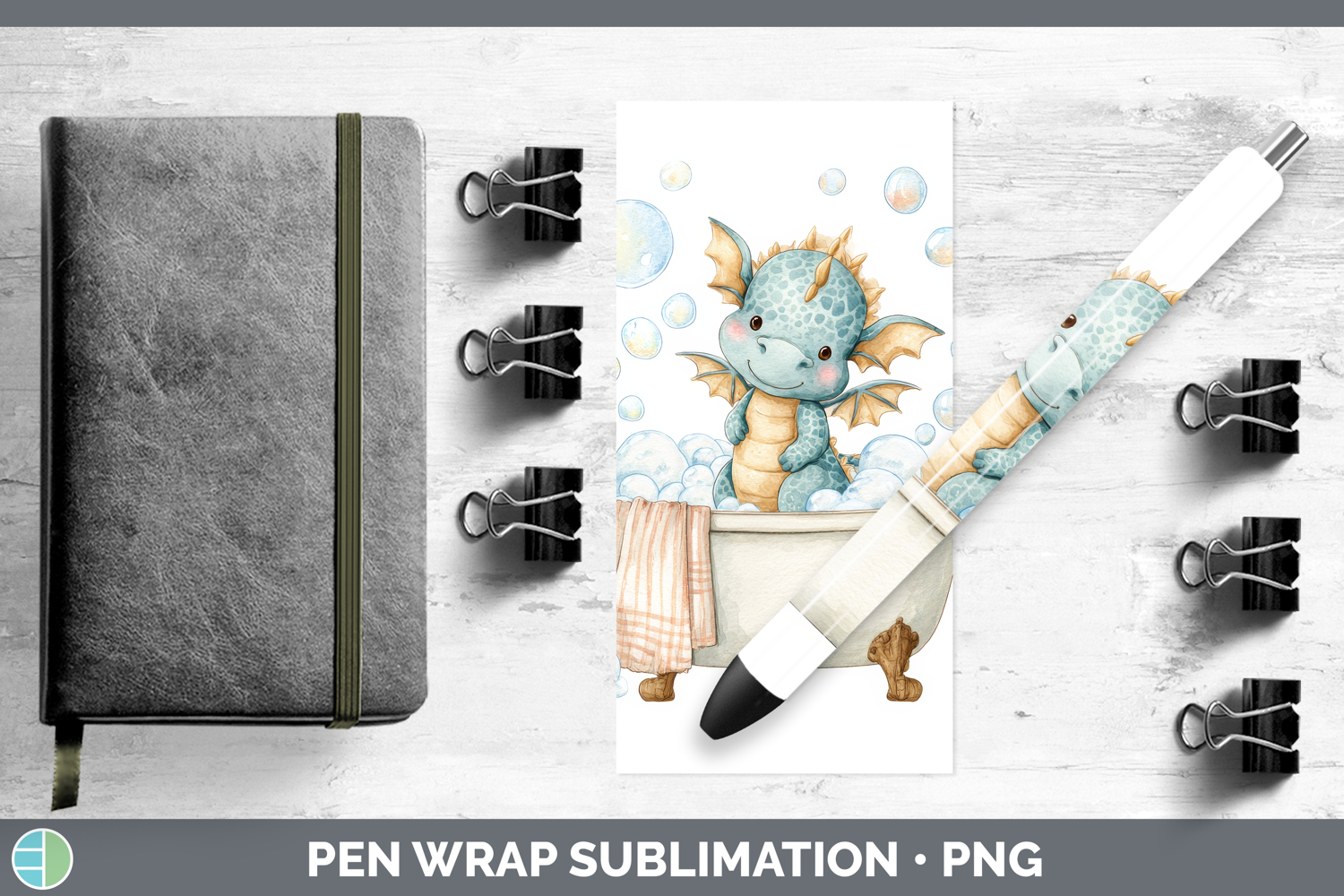 Dragon Bathtub Pen Wrap Sublimation Design