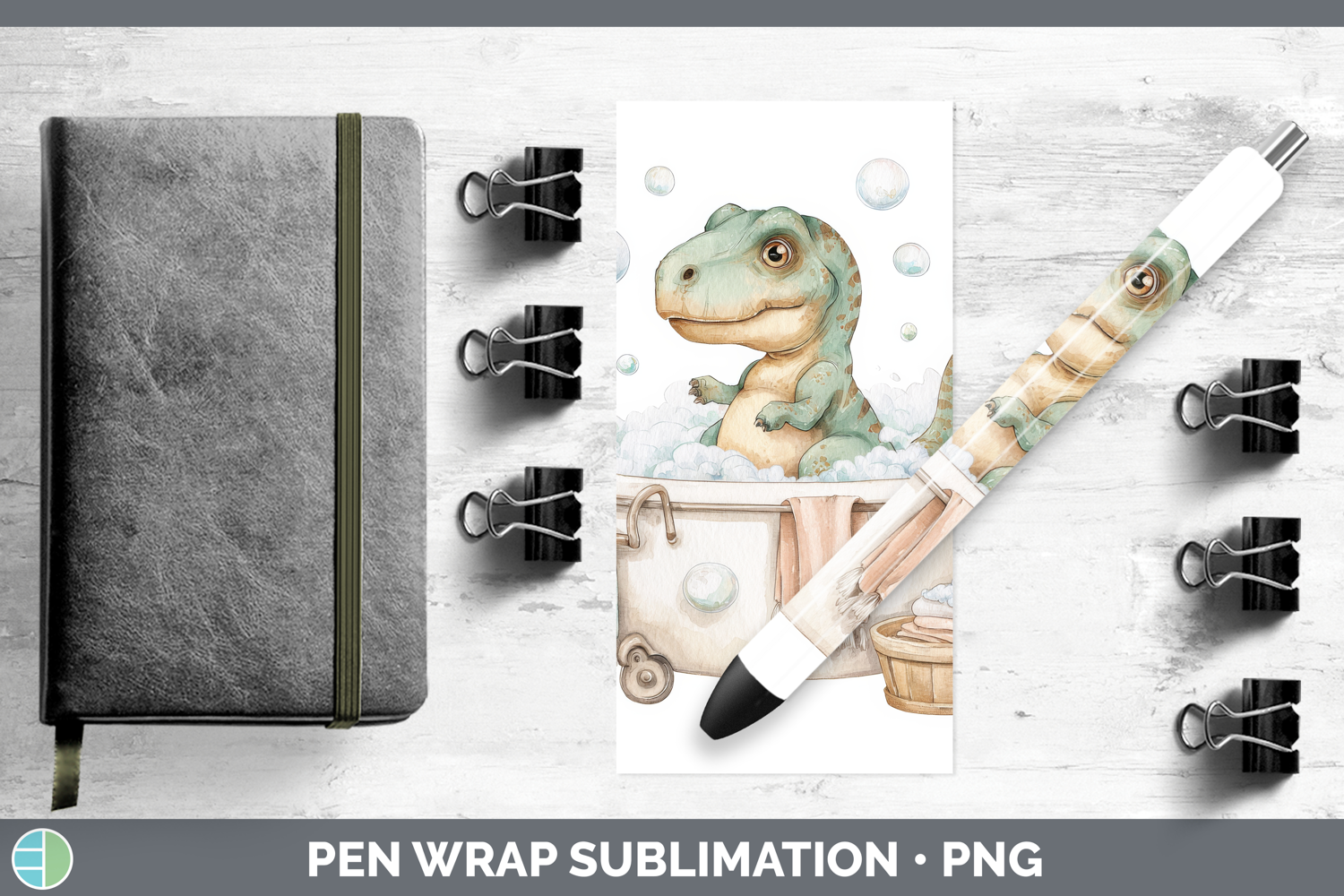 Dinosaur Bathtub Pen Wrap Sublimation Design