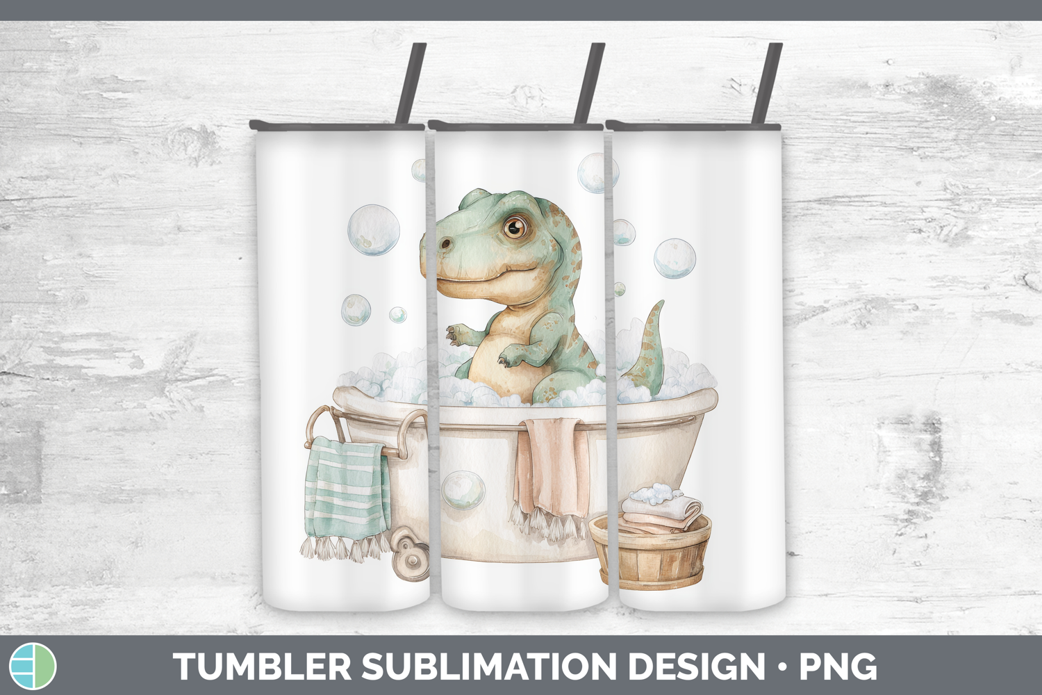 Dinosaur Bathtub Tumbler Sublimation Design