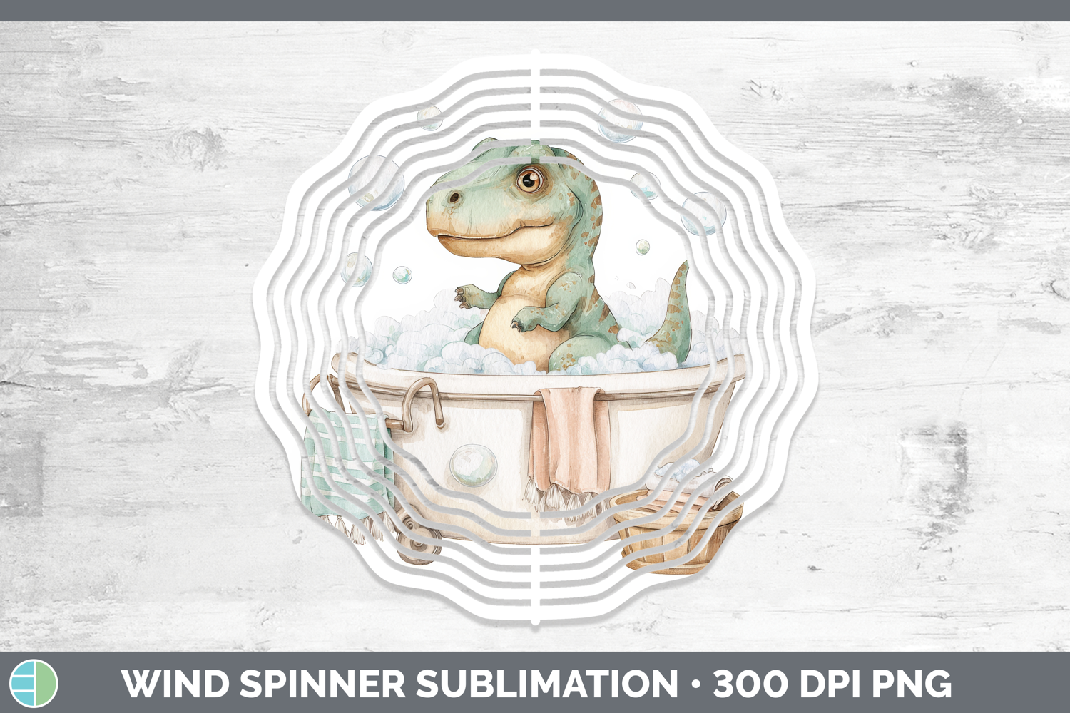 Dinosaur Bathtub Wind Spinner Sublimation Design