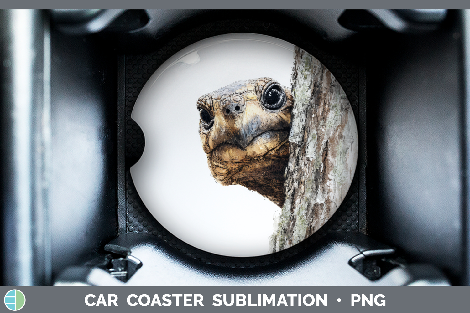 Tortoise Farm Tree Peek Car Coaster Sublimation Design