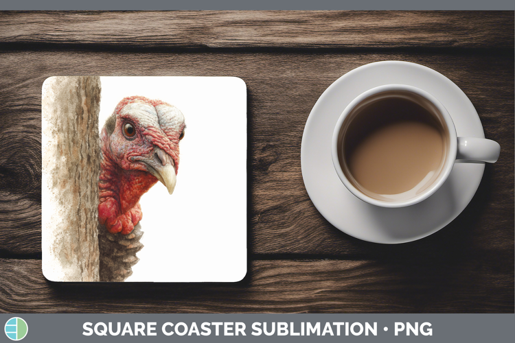 Turkey Farm Tree Peek Square Coaster Sublimation Design