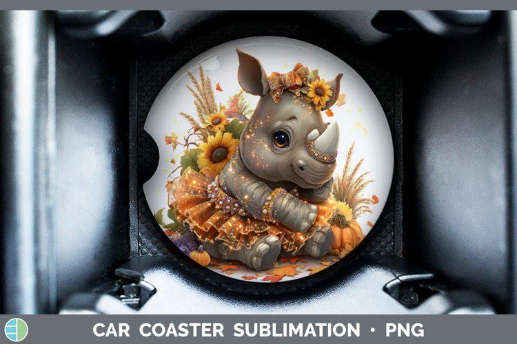Rhino Safari Cute Thanksgiving Car Coaster Sublimation Desig