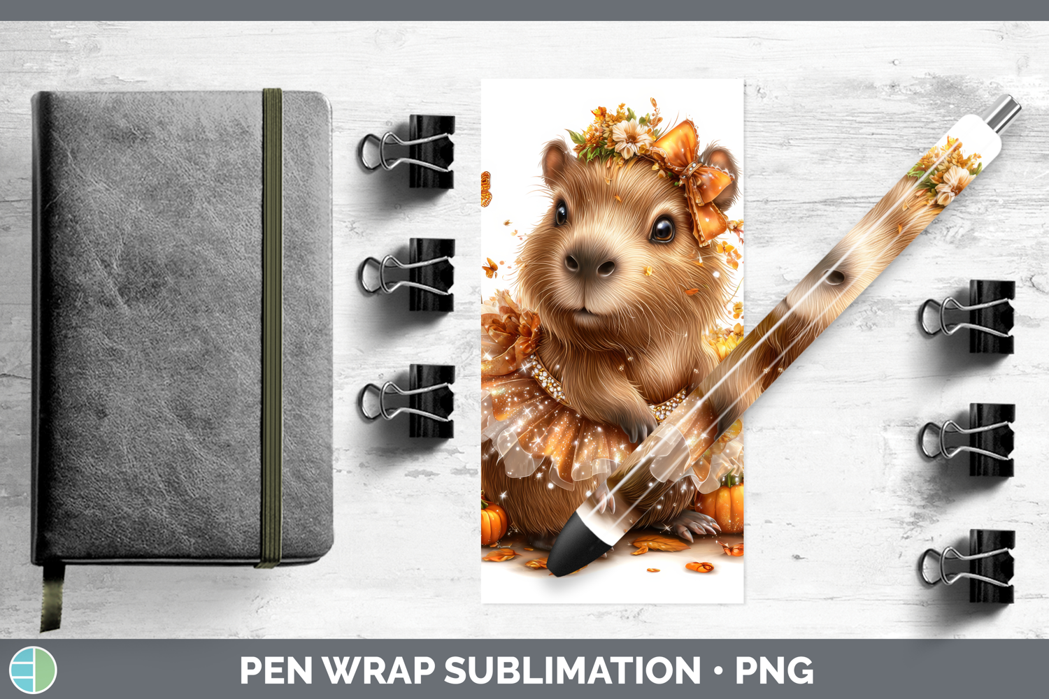 Capybara Safari Cute Thanksgiving Pen Wrap Sublimation Desig