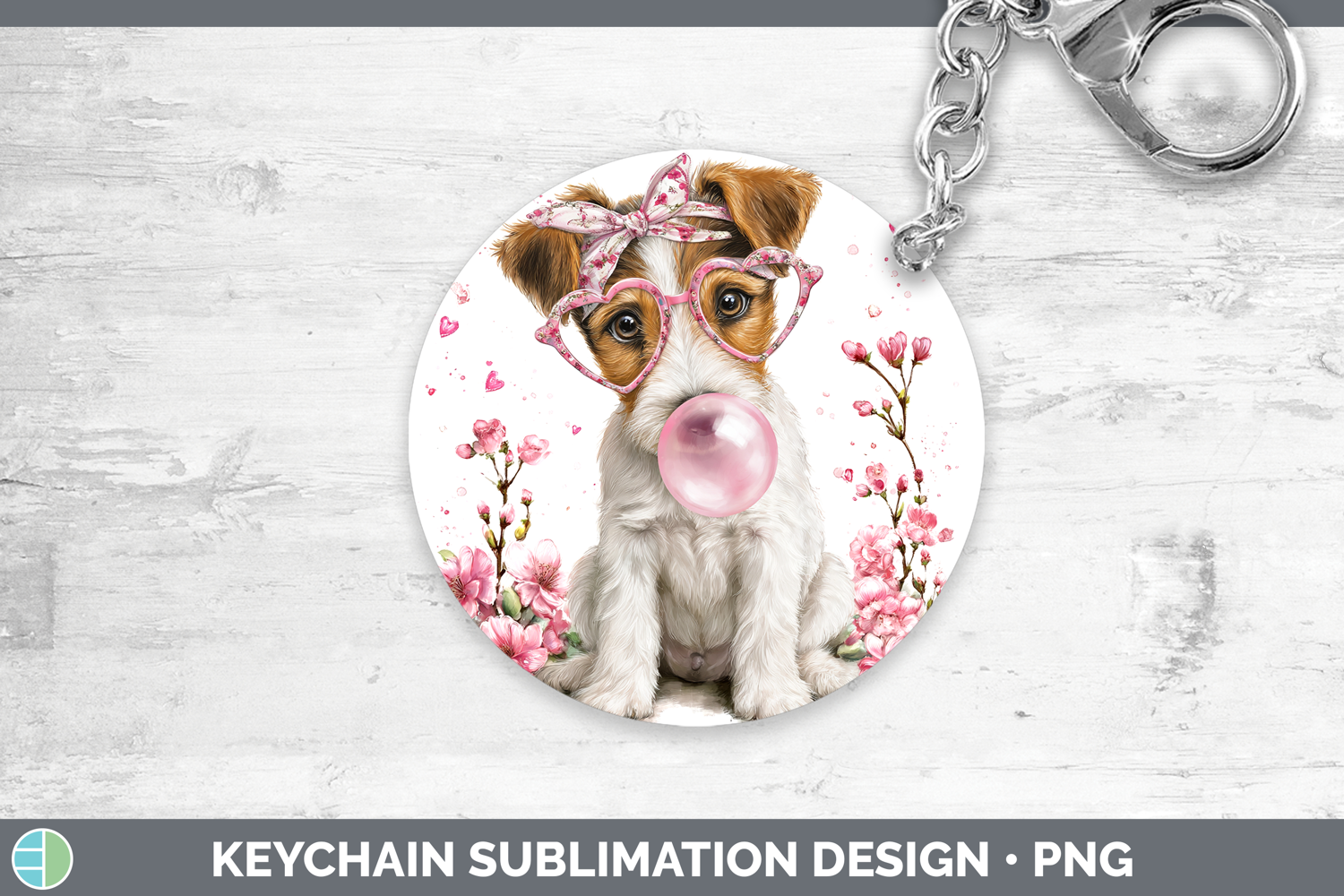 Fox Terrier Dogs 01 Pink Bubble Gum Keychain Sublimation Des