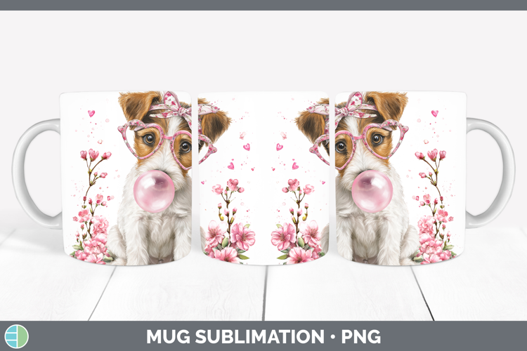 Fox Terrier Dogs 01 Pink Bubble Gum Mug Wrap Sublimation Des
