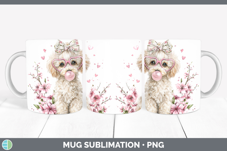 Poodle Dogs 01 Pink Bubble Gum Mug Wrap Sublimation Design
