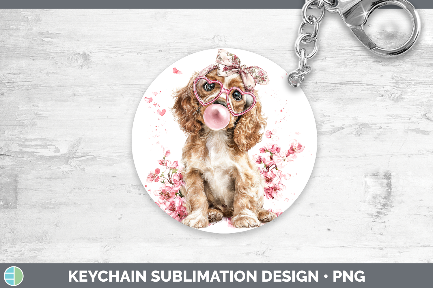 Cocker Spaniel Dogs 01 Pink Bubble Gum Keychain Sublimation