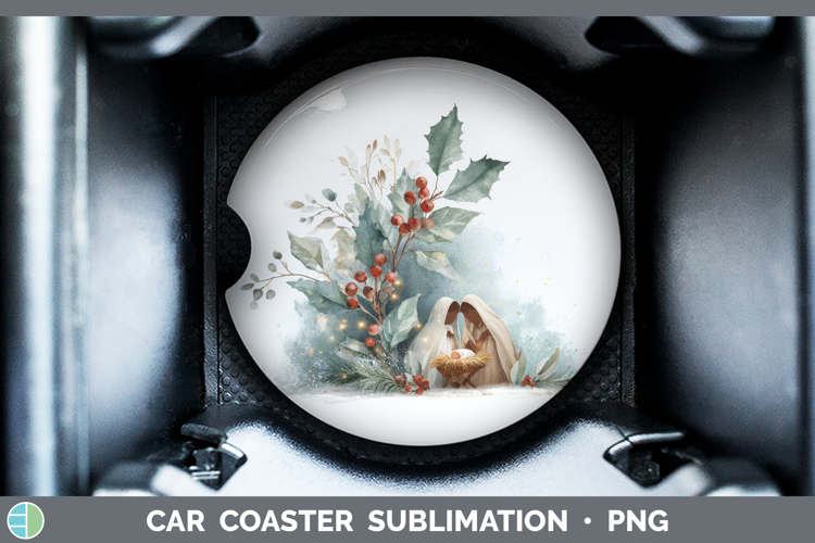 Nativity Christmas Botanicals Car Coaster Sublimation Design