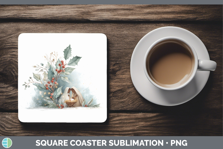 Nativity Christmas Botanicals Square Coaster Sublimation Des