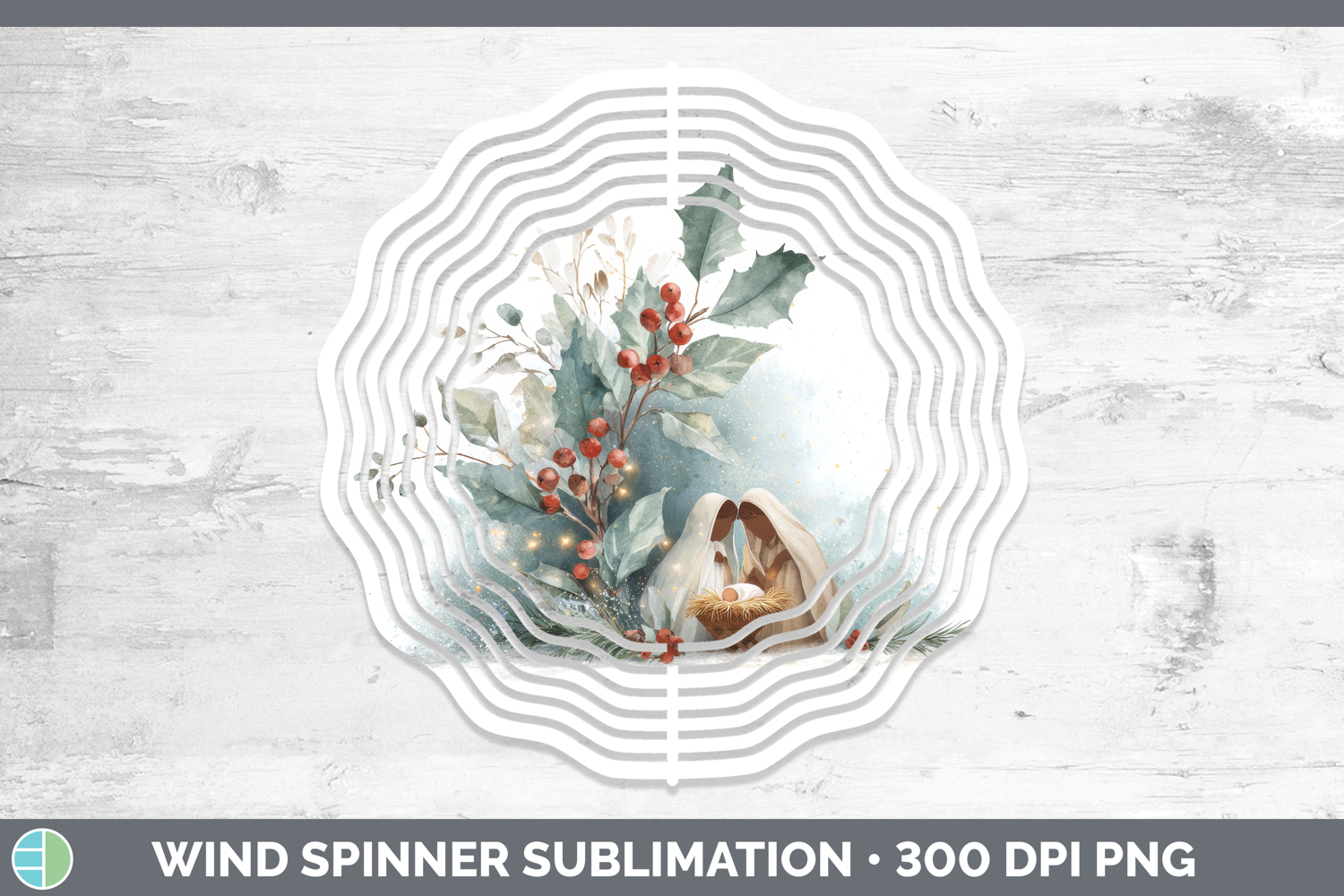Nativity Christmas Botanicals Wind Spinner Sublimation Desig